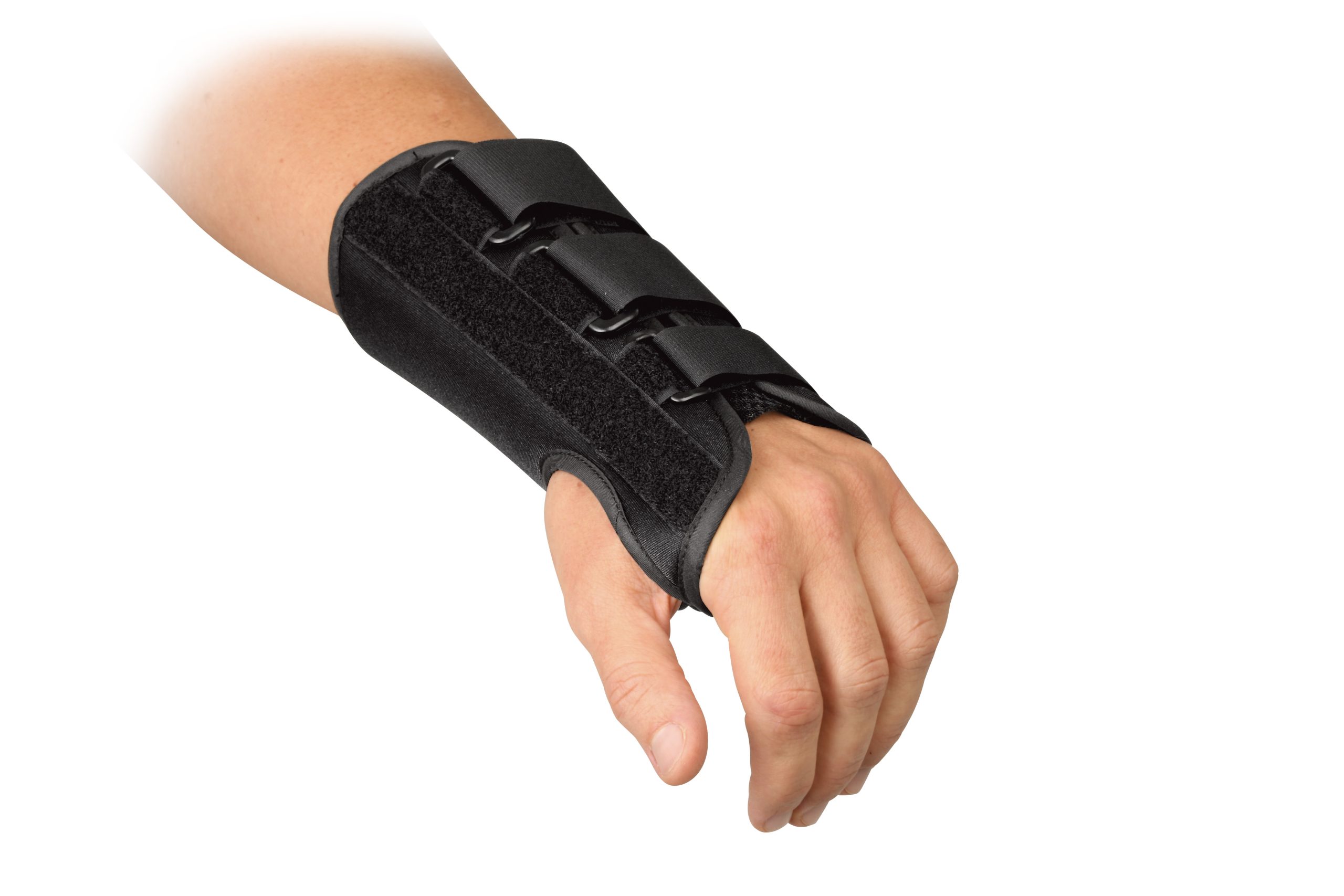 A brace that supports the wrist and hand. It helps keep them in the right position, reduces pain, and improves movement or healing after an injury, surgery, or due to a medical condition like carpal tunnel syndrome or arthritis.